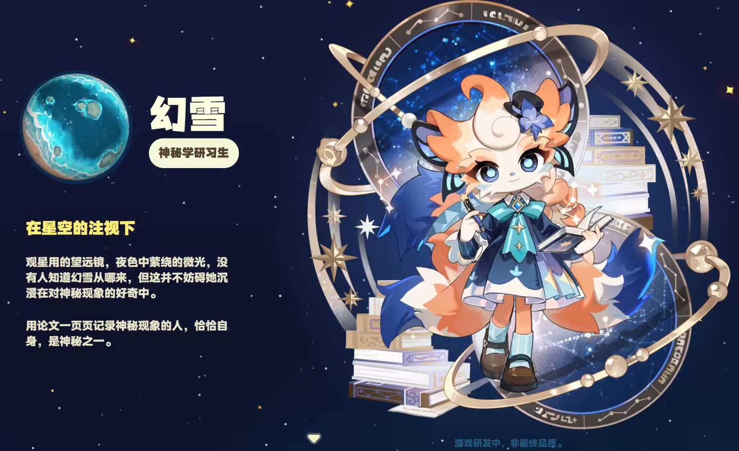 同时官方目前公布的游戏角色有云果、伊佐奇、绵朵莉、幻雪,它们的造型都类似小动物,各自拥有不同的身份,玩家可以在游戏中与这些性格各异的毛茸茸友邻们缔结友谊,探索广袤星海。