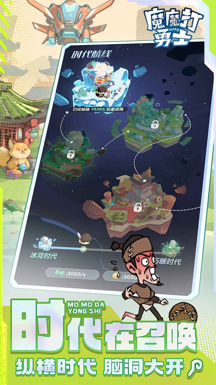 《魔魔打勇士》(1折免费版)是一款融合放置挂机、策略养成与跨时代冒险的魔性休闲手游,带你踏上一场穿梭百万年时空的救世之旅!地鼠飞船穿越归来,寻找传说中的天选之人,而你,就是那个玩泥巴却能拯救地球的最强人类!