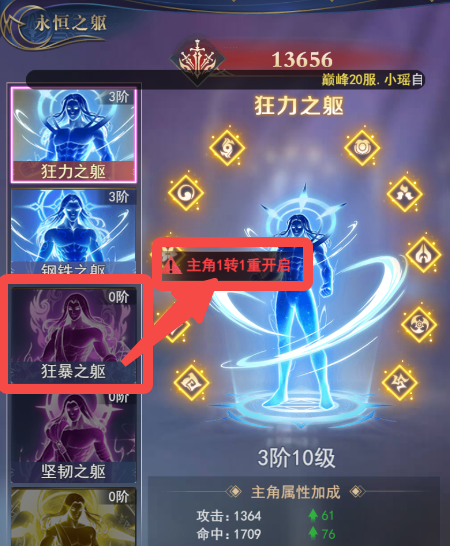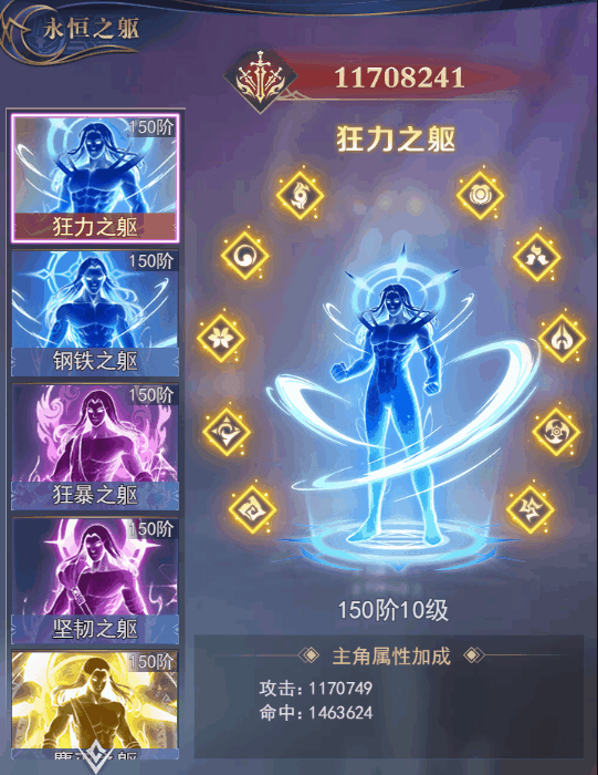 勇士可以通过消耗金币来升级不同身躯,升阶永恒之躯,从而获得大量的属性加成。