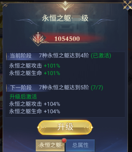 在满足升阶条件的情况下,适时进行永恒之躯的升阶以获得更大的属性提升。