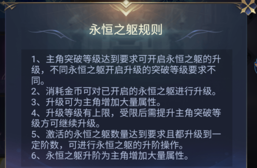当勇士激活的身躯数量以及身躯等级,达到一定阶数时,可以对角色的永恒之躯进行升级;