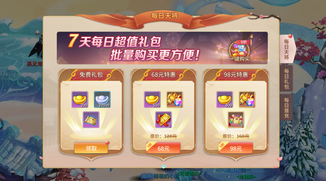 后面的天数,缺仙玉的不要直接充值648,而是买霸服礼包里的648,因为里面不仅有仙玉,还有其他道具。