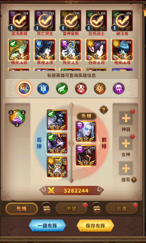 携带自我恢复、减伤或反击技能的英雄适合放置于前排,发挥其技能特性。