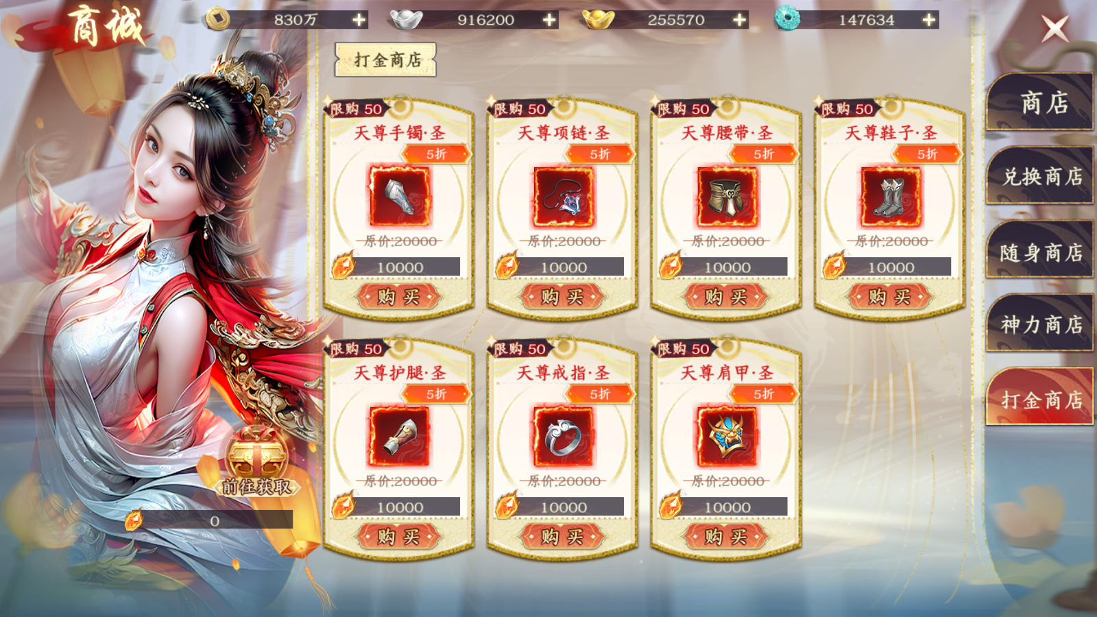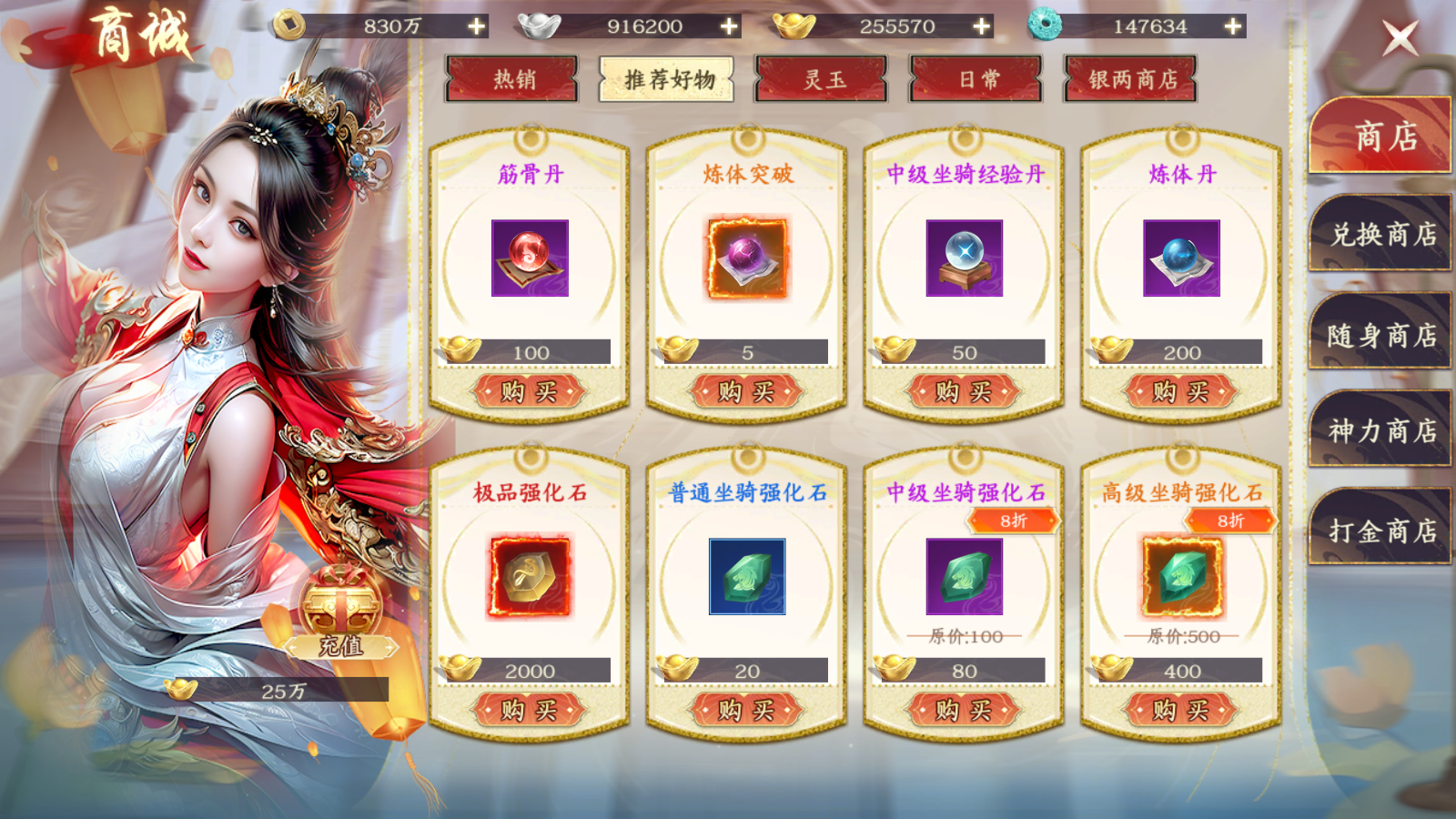 7、商城每日可折扣购买200次银两,共计20w,每日必买;