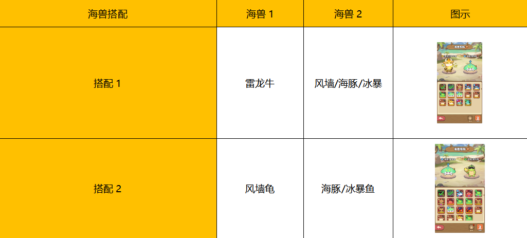 海兽上阵搭配:玩家等级到达五十五级时可以上阵两只海兽(上限),目前存在两种搭配。