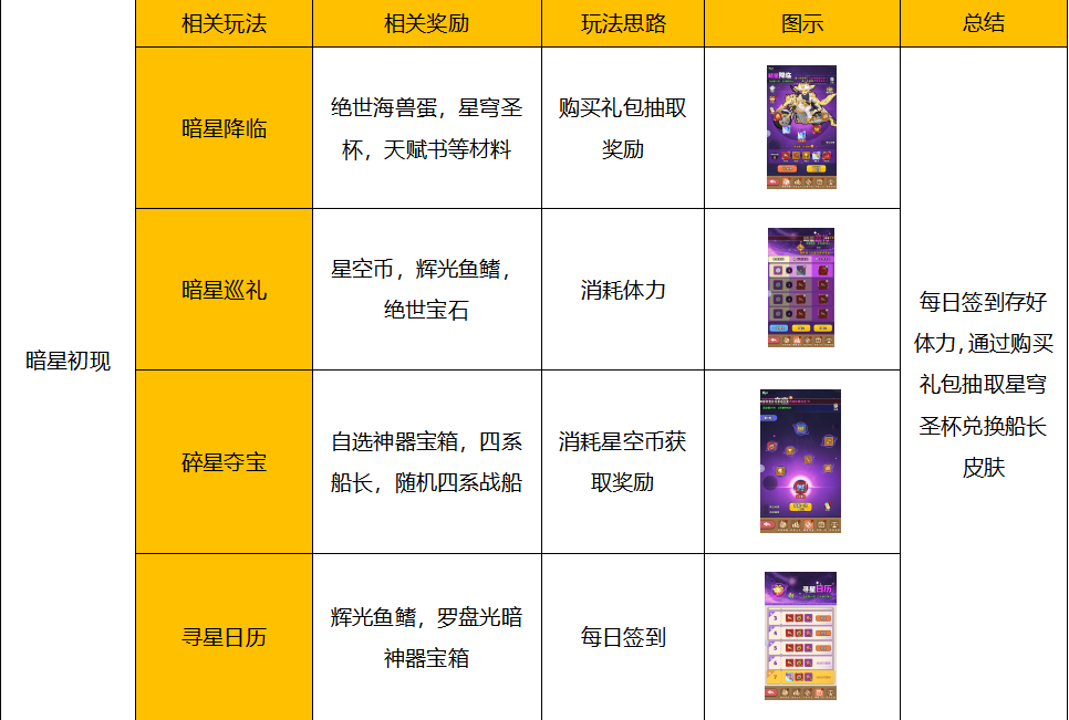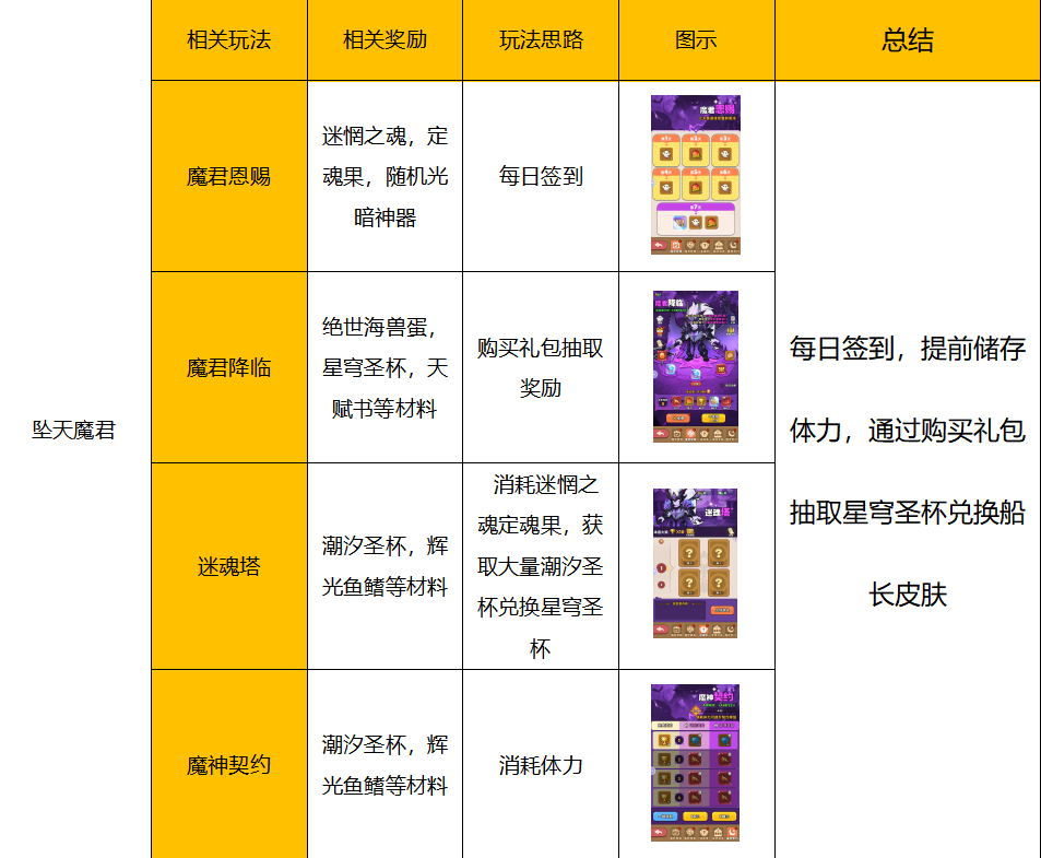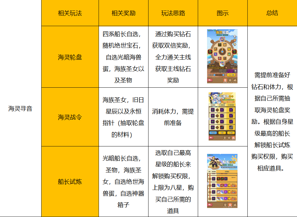 游戏整体分为5个部分:阵容搭配,宝石搭配,活动玩法,海兽培养以及副本玩法。