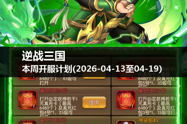 | 逆战三国(0.05原价十倍奖励) | 枭雄4区 | 安卓端 | 2026-04-14 09:00 |