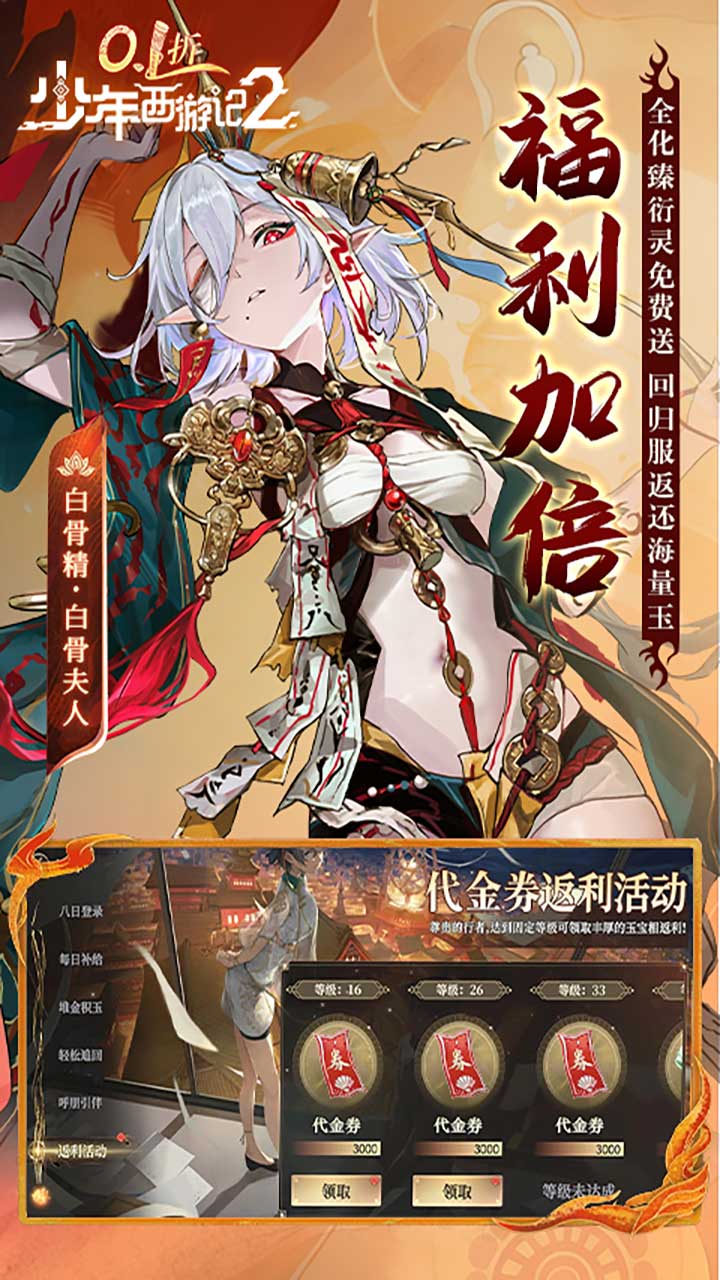 1101-1231单日累充活动【活动时间】11月1日—12月31日【活动范围】全服【活动规则】高档位可以领取低档位奖励【领取方式】达到条件后需向客服申请,申请后